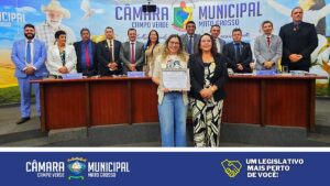 A Câmara Municipal de Campo Verde entrega Moção de Aplausos à Professora Lidiane Álvares Mendes.