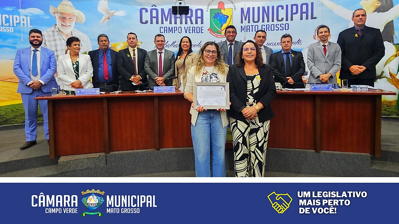 A Câmara Municipal de Campo Verde parabeniza a Professora Lidiane pela merecida homenagem recebida.