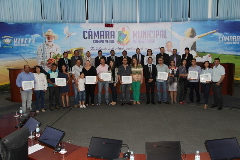 Na noite desta segunda-feira (08), durante a Sessão Ordinária, foram entregues quatro Moções de Aplauso. A Moção 026/2014, proposta pelo vereador Clebinho do Judô, foi entregue à Srta. Tatiane Gonçalves, editora da Revista Mural Social, pelo trabalho de divulgação das empresas, bem como o apoio na divulgação dos projetos sociais desenvolvidos em Campo Verde. A diretoria da Associação Campoverdense de Artes Marciais (ASCAM) recebeu a Moção de Aplauso 028/2014, de autoria dos vereadores Clebinho do Judô e Paulo Cezar de Aguiar. Na mensagem da Moção, os parlamentares ressaltaram que a homenagem se deve ao trabalho desenvolvido pela diretoria em seu primeiro ano à frente da Associação. A Moção de Aplauso 029/2014, de autoria do vereador Donizete Restani, foi entregue à Pastoral Familiar da Paróquia São Cristóvão, “pelos trabalhos realizados pelas famílias de Campo Verde, através do curso ‘Cinco Linguagens do Amor’”. E a Moção de Aplauso 030/2014, entregue à Brigada de Incêndio e Defesa Civil Voluntária de Campo Verde, teve autoria do presidente da Câmara, vereador José Humberto dos Santos. Na mensagem da Moção, o parlamentar justificou a homenagem ressaltando que os envolvidos com a brigada e a Defesa Civil realizam um trabalho voluntário, que ajuda na prevenção de acidentes e no combate a incêndios. Clique na imagem, para ampliar.